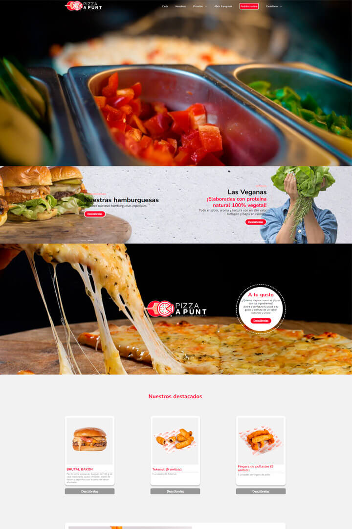 El Grupo Pizza a Punt ha confiado en nosotros para fortalecer sus plataformas digitales mediante un desarrollo técnico estratégico e integral, que abarca desde sitios web hasta una innovadora app PWA accesible en cualquier dispositivo. Además de implementar políticas centradas en el cliente, como la personalización gratuita de ingredientes, hemos desarrollado promociones exitosas, todo orientado a mejorar la experiencia del usuario y adaptar sus servicios a un mercado en constante cambio. Esta alianza ha permitido que Pizza a Punt destaque en el sector, ofreciendo una experiencia única y personalizada para sus clientes.